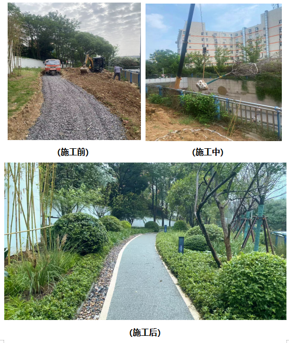 2.中校区下穿通道北侧景观绿化提升项目:9月栽植高干早樱14株、球类灌木7株,种植鸢尾4042盆、兰花三七180㎡,该项目现已完工。