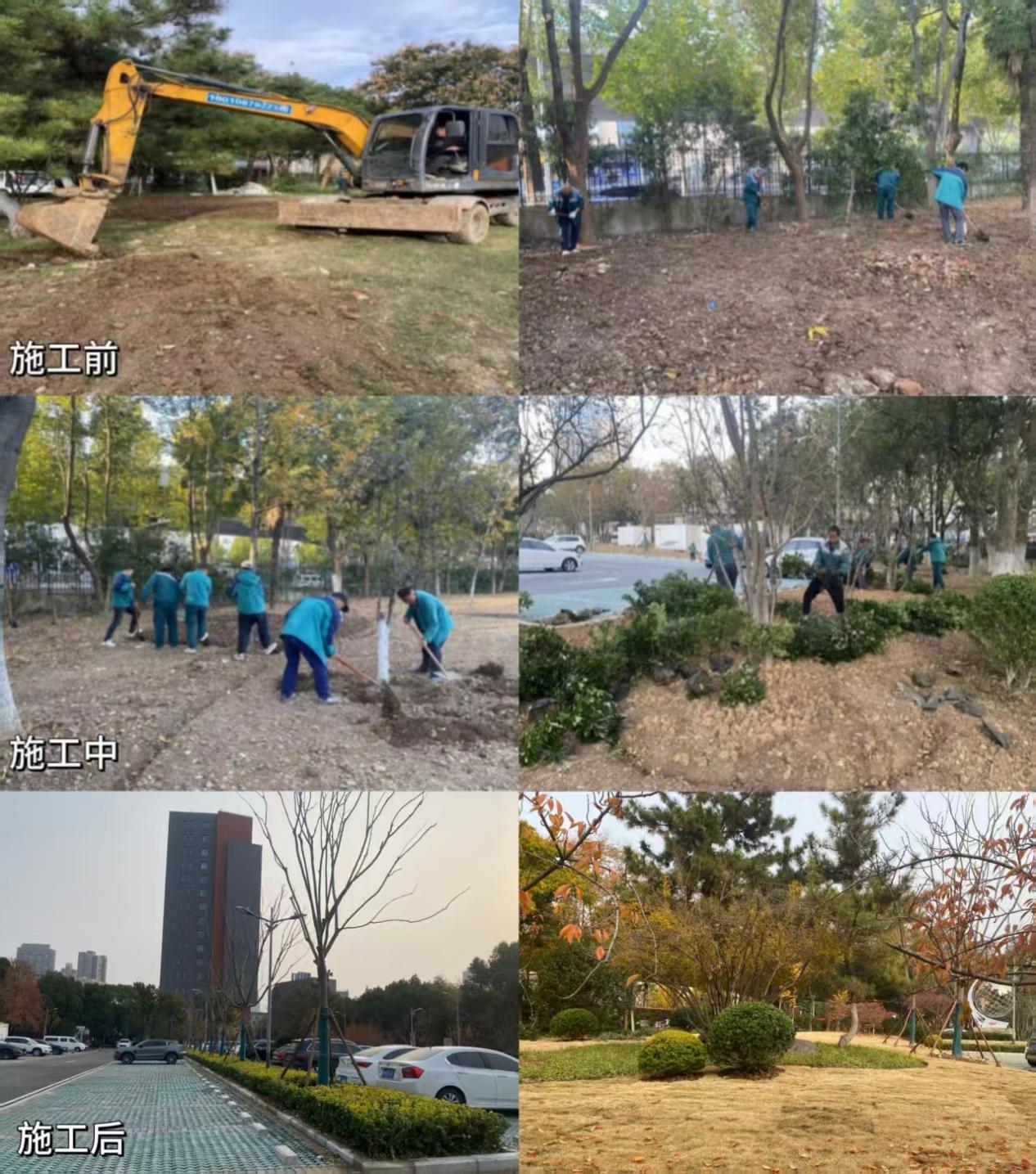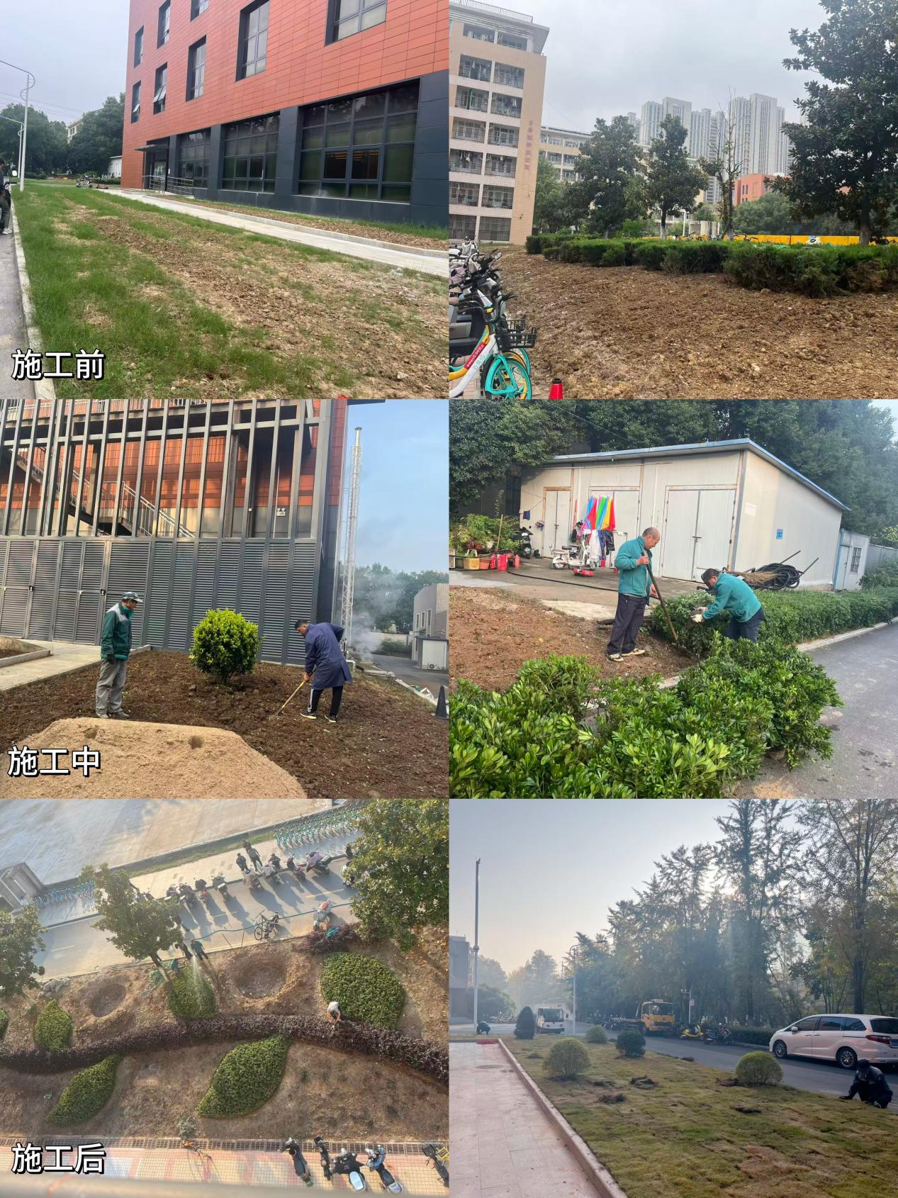 1.东校区北门停车场绿化带补植工程:整理绿化用地3800㎡,补植栾树15株,移植樱花4株、桂花4株、鸡爪槭4株,栽植植海桐球7株、女贞球6株、无刺枸骨球5株、亮晶女贞球6株、北海道黄杨240株、海桐107㎡、金森女贞86㎡、金边麦冬251㎡、兰花三七1190㎡、细叶麦冬203㎡ ,铺植马尼拉草坪1760㎡。