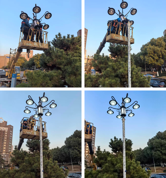 西校区图书馆室外柱形灯维修