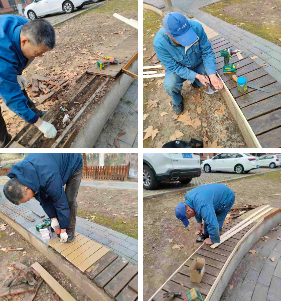 中校区室外木地台及木条凳维修