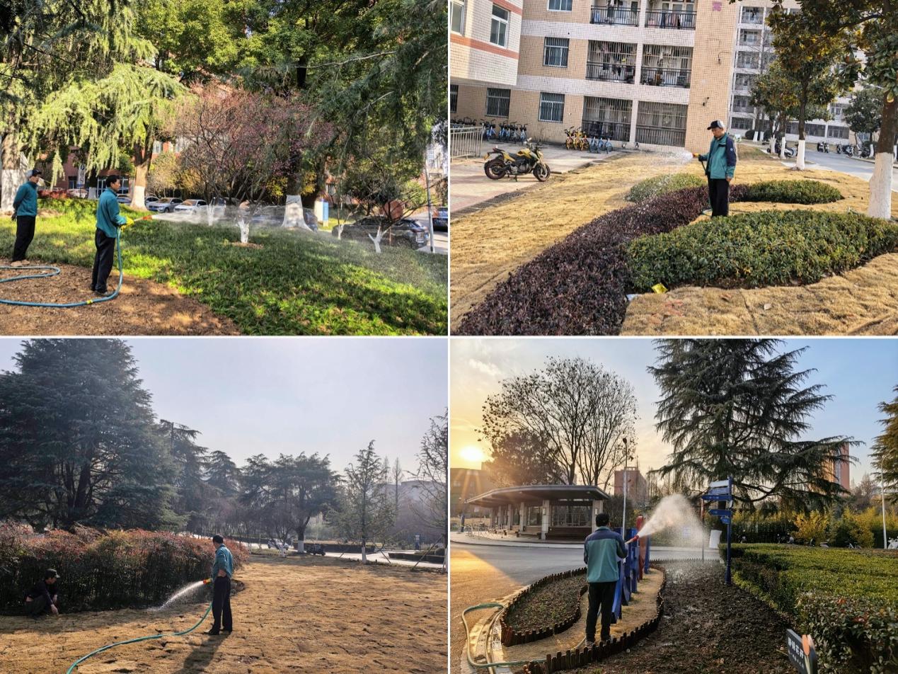 冬季乔灌木修剪、松土开盘、浇水及草坪修剪等日常养护作业有序开展。具体工作内容如下: