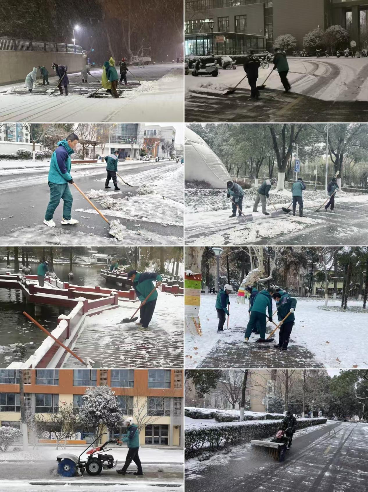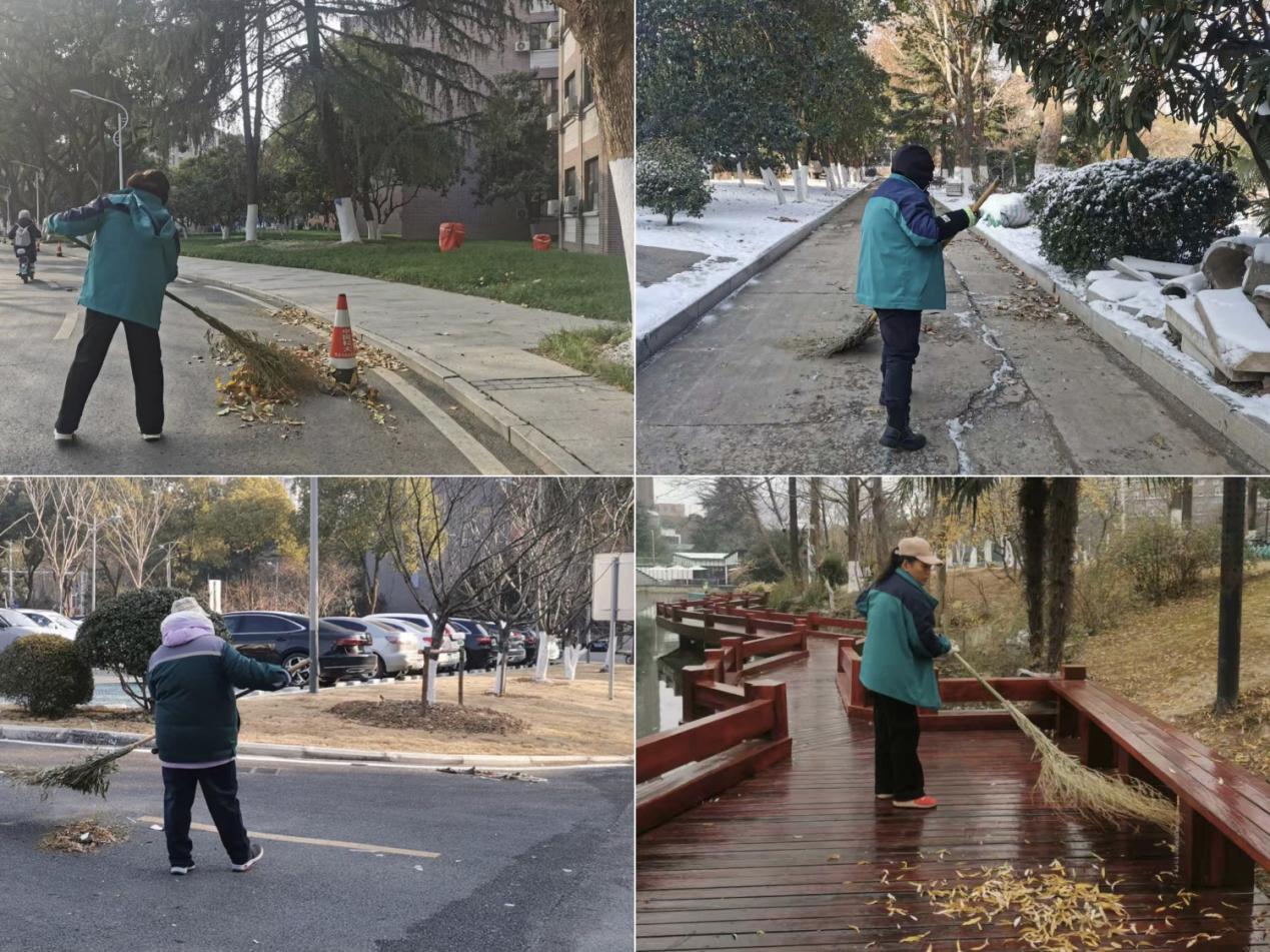 1月20日,合肥市迎来持续低温雨雪天气。为保障校园运行安全及师生出行通畅,中心迅速启动冰雪天气应急预案,组织力量在各校区有序开展扫雪除冰工作。全体作业人员按照“先主干道、后次要区域,先陡坡路段、后平坦路面”的原则,不畏严寒、迎雪而战,通过高效协作全力保障校内主要道路及重点区域畅通。此次除雪行动有效降低了雨雪天气带来的出行安全隐患,为师生的日常通行创造了安全、便利的环境。