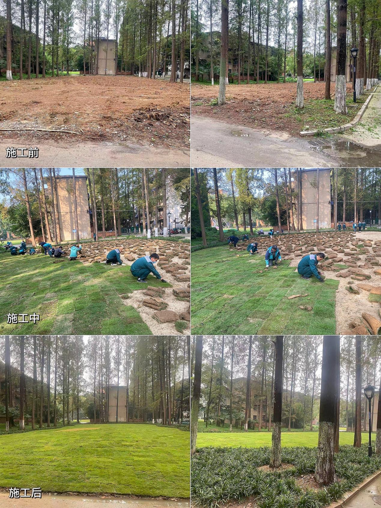 3.南校区体育馆改造管道开挖后绿化恢复项目:铺植马尼拉草坪420㎡、兰花三七130㎡。