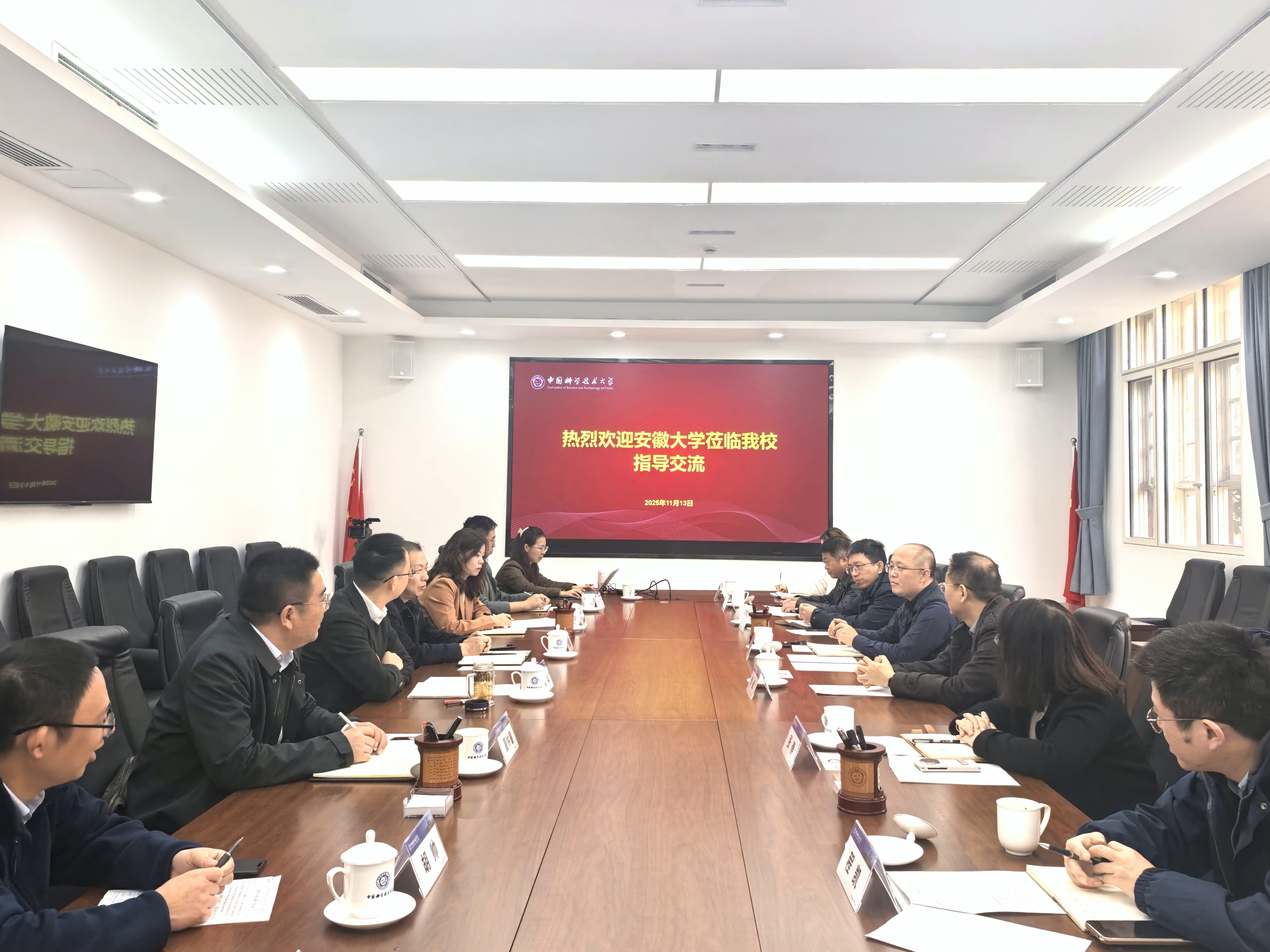 2025年11月13日,安徽大学校党委常委、副校长陈城一行来我校调研交流校园改造提升和饮食服务管理工作。校党委常委、党委统战部部长李峰主持会议,基本建设处、饮食服务集团负责人及相关工作人员参加交流研讨。